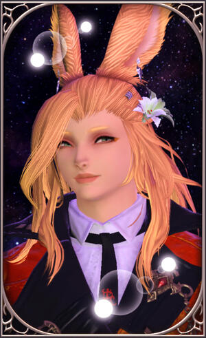 ☆ in relationship with: Haurchefant (married), G'raha (boyfriend), Thancred (friends with benefits from ARR to post-StB, now just friends)